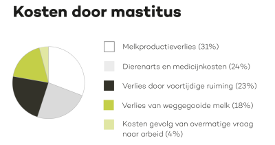Het onderzoek laat zien dat mastitis per geval zo’n €240 kost. Ook blijkt dat de boeren na overstap gemiddeld 16 gevallen minder per jaar hadden, wat neerkomt op een besparing van €3.840 per bedrijf. Over deze daling wordt nog vervolg-onderzoek gedaan.